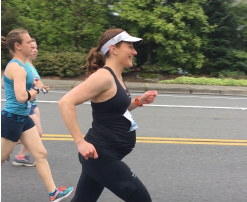 After doing a ten mile training run at 9 min/mile pace, I remember thinking I could possibly run under 2 hours, but decided instead to put my ego aside and take this opportunity, after 20 years of racing, to focus on truly enjoying this experience, with no goal time in mind, especially since this race was on cement rather than trail, with each footstrike taxing my lower back, hips, and knees far more than trail running, pregnant or not. I decided to stay very chill, really listen to my body (in case my growing baby, who loves it when I run, decides she doesn’t want to go that far or fast that day far any reason and sends even the slightest signal since she’s in charge), run when I felt like it, walk when I felt like it, stop at all water stations and port-a-potties, thank all volunteers, and cheer on fellow racers. Success! According to my watch, my finishing time was 2:32, though I stopped it while waiting in line for my bathroom stops, so my official time would be a few minutes more. I started out at 7:30 pace for the first two (downhill) miles, and even though I felt good, made myself slow down to 8:30/9 min mile for the next few miles, hit the halfway point at around 1 hour, walked a couple miles when indigestion settled in nowhere near a bathroom, and then did a jog/walk combo for the last half as the indigestion went away but my lower back and hips inevitably started to get sore under the added weight. Although indigestion is common during pregnancy, in retrospect, I probably got it simply from not sticking with my usual strict pre-race meal. I figured I wasn’t running hard, so It wouldn’t matter, but it turns out it did. It’s okay, though, because I wasn’t worried about time, and walking allowed me to engage in conversation with the people around me, soak in some waterfront views, and enjoy a sense of accomplishment not only in finishing, but in feeling pretty good the rest of the day, injury-free and not too terribly sore, either.